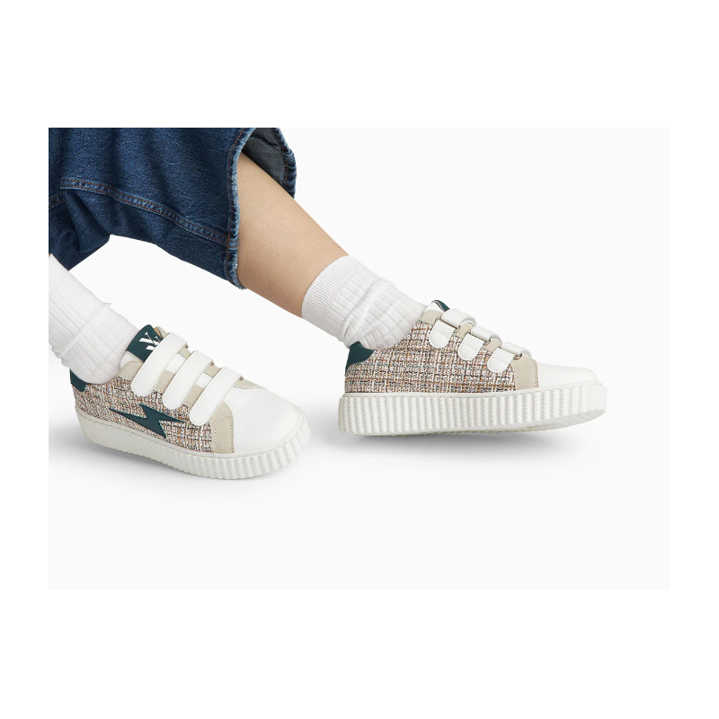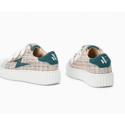 - Baskets en tweed tressé blanc, bleu clair, beige et marron