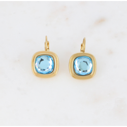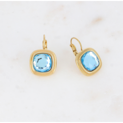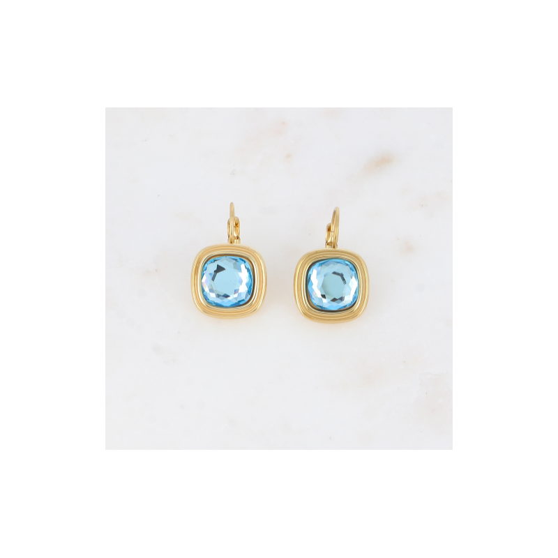 Boucles d'oreilles dormeuses en acier inoxydable composées de cristaux carrés.