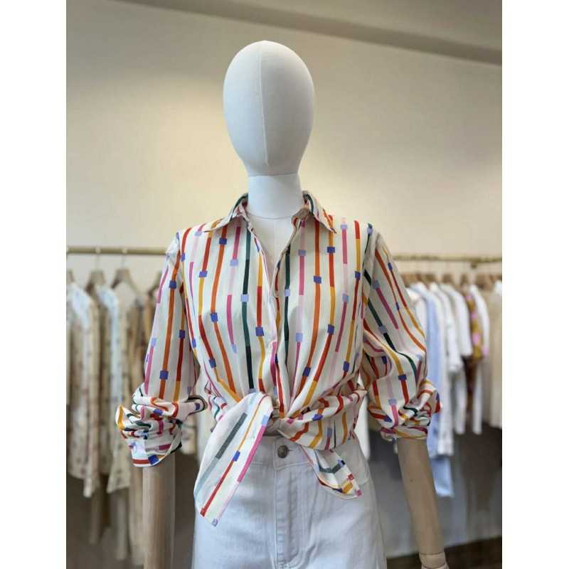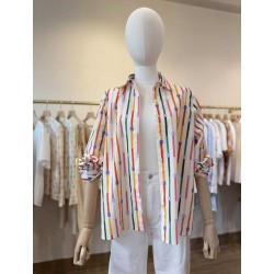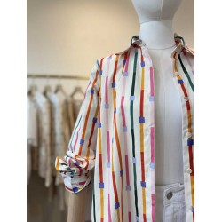 chemisier fond ivoire avec des rayures multi colors