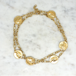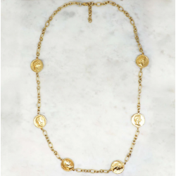 La chaîne longue est ponctuée de médaillons gravés de profils antiques en relief.