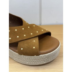 Compensée tout en cuir, cuir souple. Chausse parfaitement les pieds sensibles !