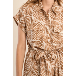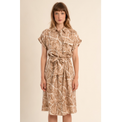 Robe chemisier courte, imprimée -Manches courtes -Taille élastiquée, nouable par ceinture -Coupe droite -Fermeture par boutons sur la poitrine