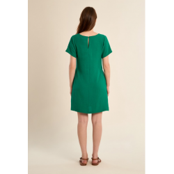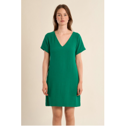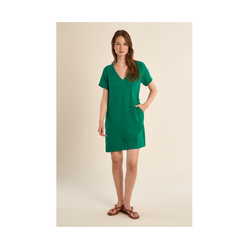 -Robe t-shirt droite -Manches courtes -Col V -Poches latérales