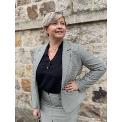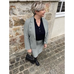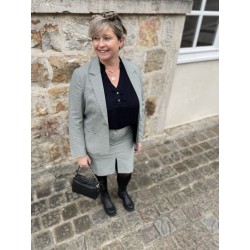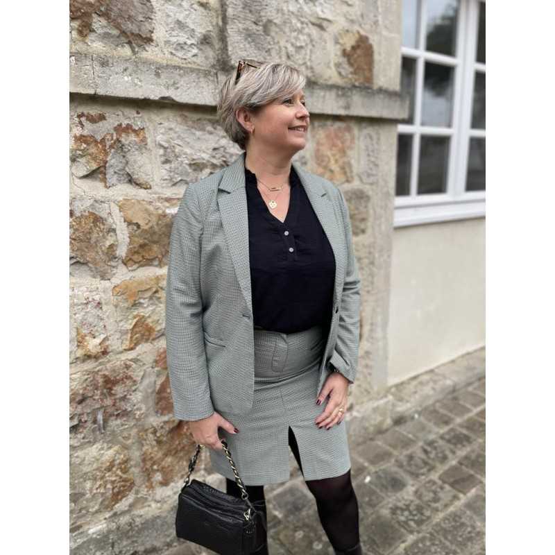 jupe pied de poule fente devant et fausse poche a l'avant