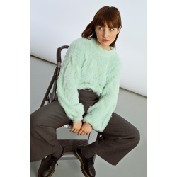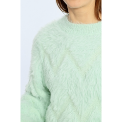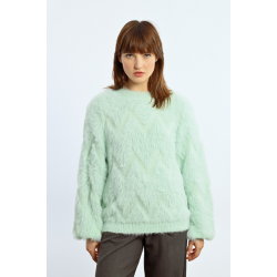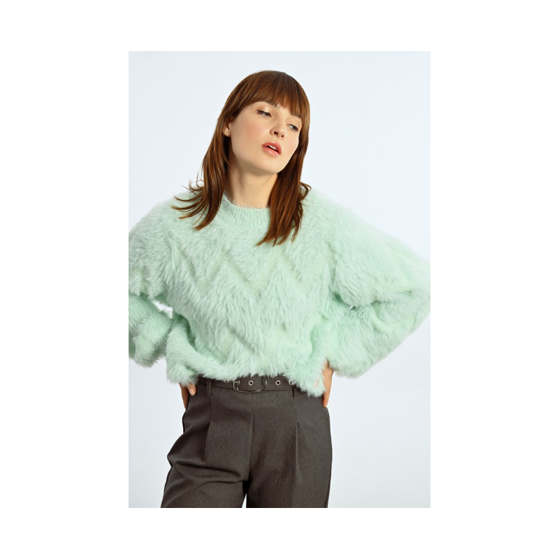 -Pull oversize en maille texturée-Manches longues-Encolure ronde-Effet peluche-Motif zig-zag
