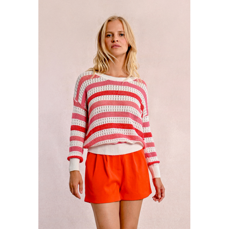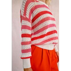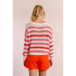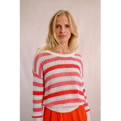 -Pull en maille ajourée -Rayures de couleur -Encolure ronde -Manches longues -Finitions côtelés