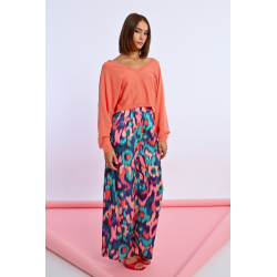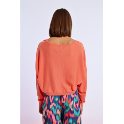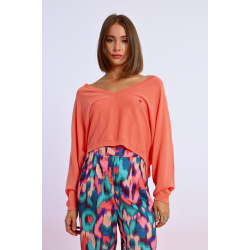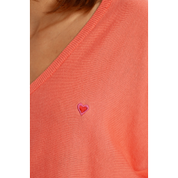 Pull court en maille -Manches longues -Large encolure V -Coupe large -Cœur brodé sur la poitrine
