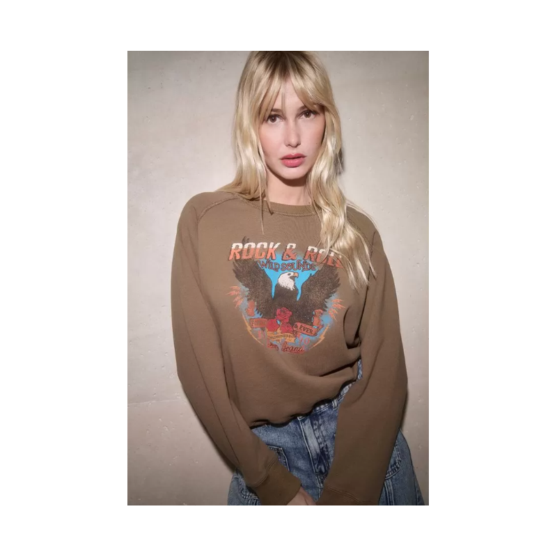 -Sweat-shirt droit-Manches longues-Encolure proche du cou-Logo ROCK N ROLL-Coupe oversize