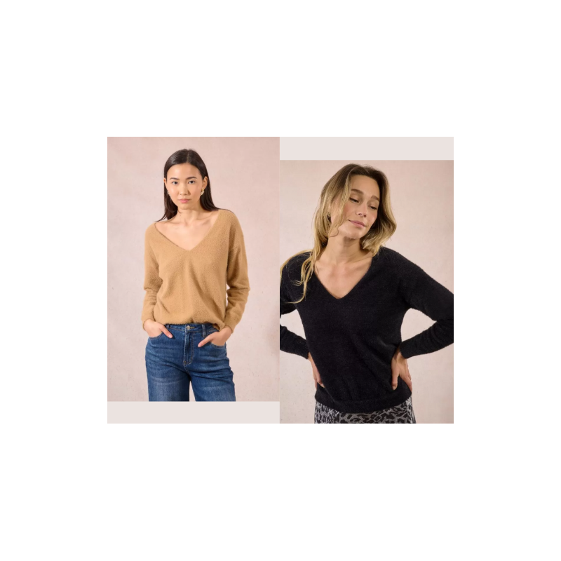 -Pull fin en maille texturée -Manches longues -Encolure V -Coupe ajustée