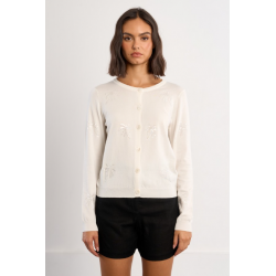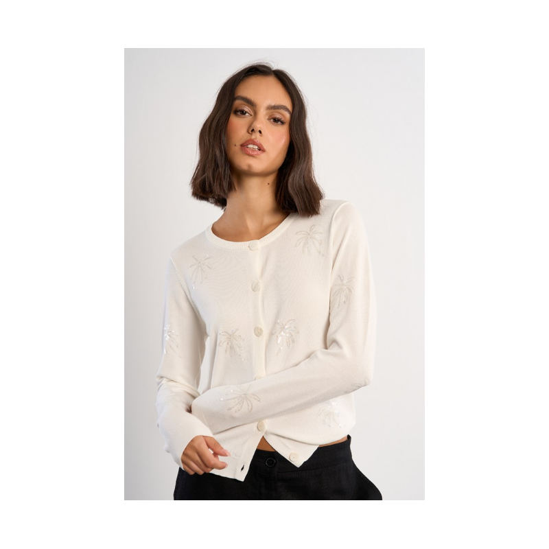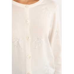 Cardigan aux motifs palmiers -Manches longues -Col rond -Fermeture par boutons sur toute la longueur devant