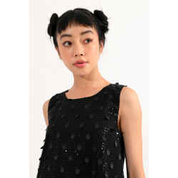 Robe de forme trapèze sans manches, en tulle transparent avec gouttes en relief