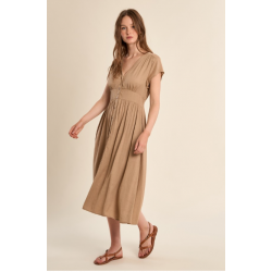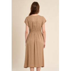 -Robe midi, cintrée -Manches courtes -Col V -Fermeture par boutons sur toute la longueur devant