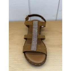 Sandale plate avec petit talon de 2 cm, tout cuir très confortable on adore les strass sur le dessus !