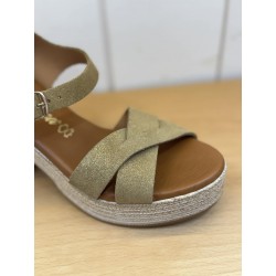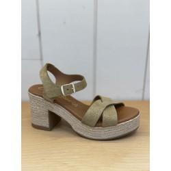 Sandale talon épais avec le confort d'une talon compensé, tout cuir.
