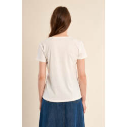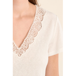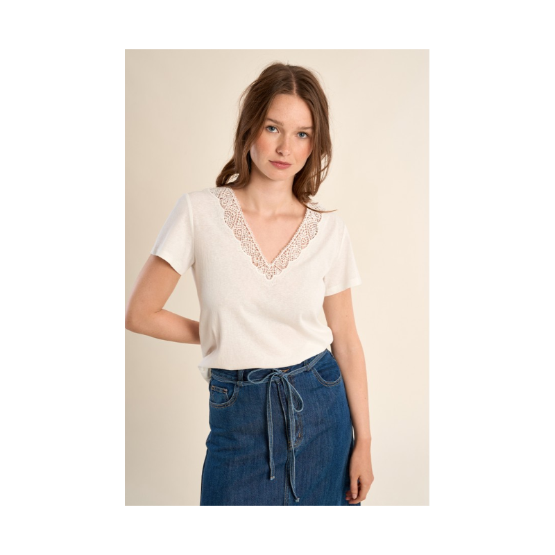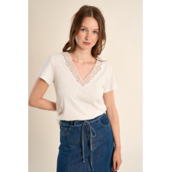 -T-shirt droit -Découpes ajourées au dessus de la poitrine -Manches courtes -Col V -Coupe droite