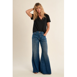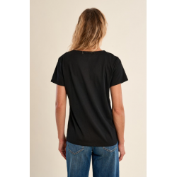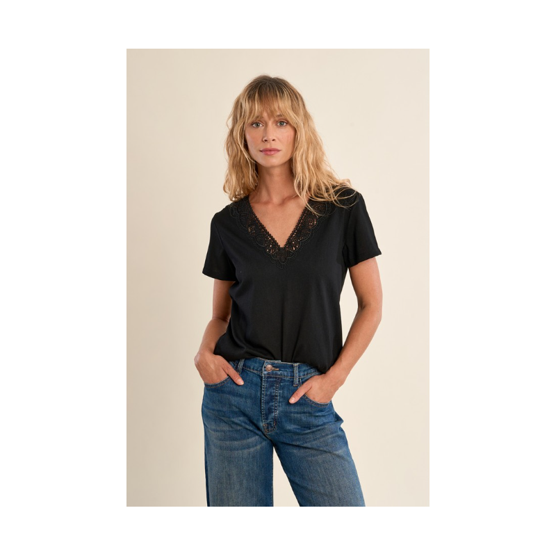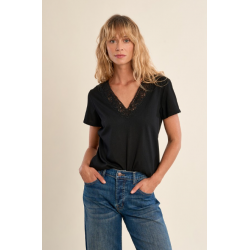 -T-shirt droit -Découpes ajourées au dessus de la poitrine -Manches courtes -Col V -Coupe droite