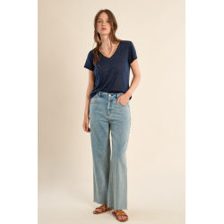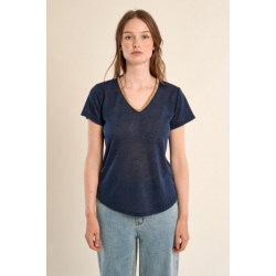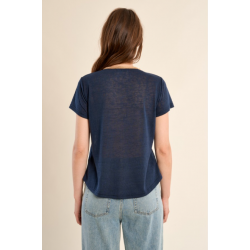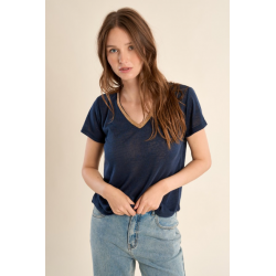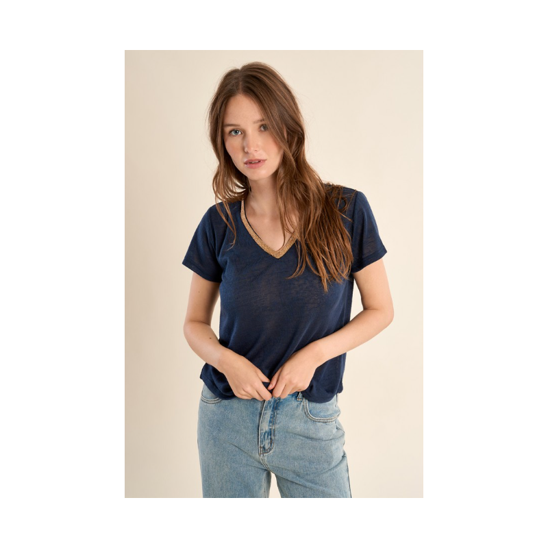 -T-shirt col V, doré -Manches courtes -Semi-transparence