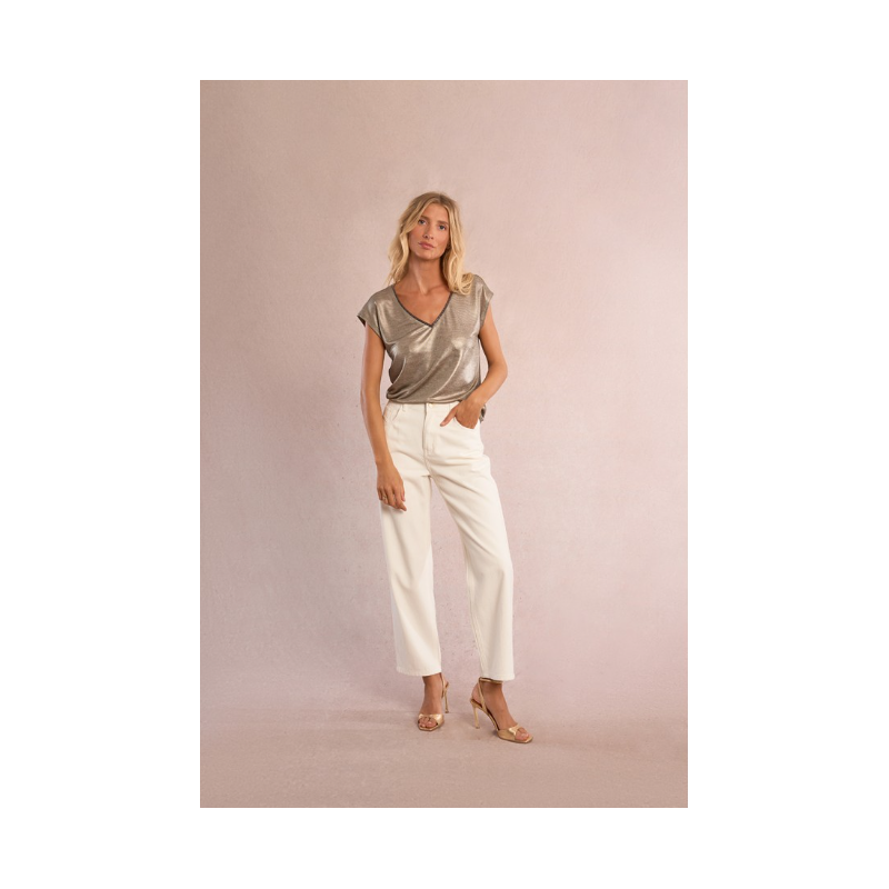 T-shirt irisé -Coupe droite -Manches courtes -Encolure V