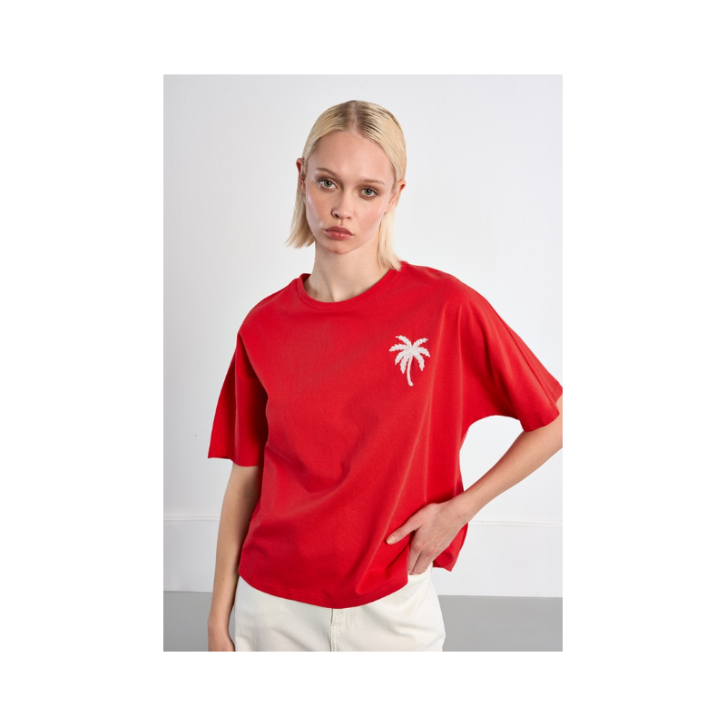 T-shirt oversize palmier -Manches courtes -Col rond -Coupe oversize -Palmier sequin